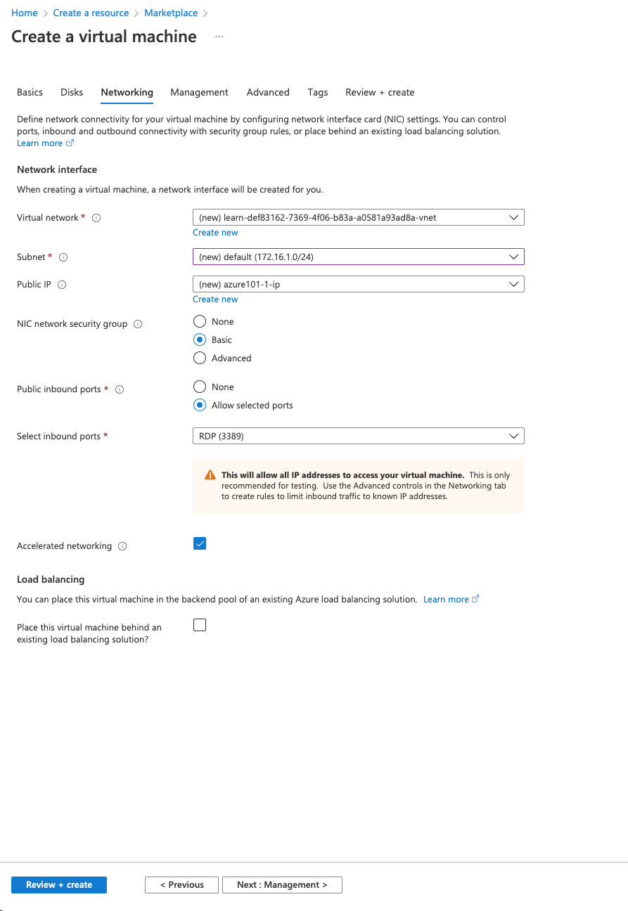 We want to be able to access the desktop for this Windows VM using RDP. (This is for lab only)