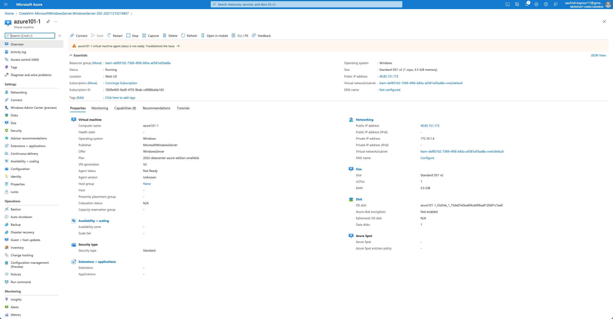 In this lab, you learned how to create a Windows VM using the Azure portal.