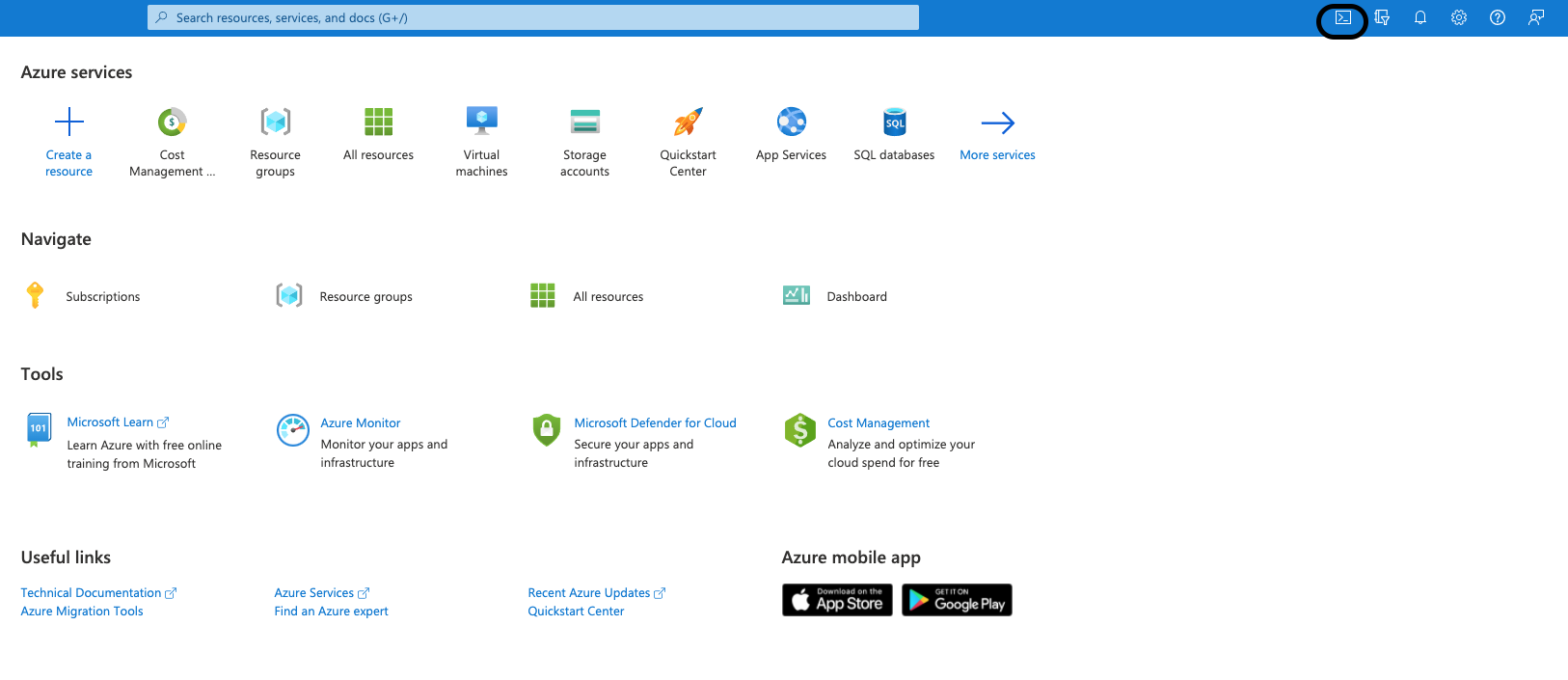 Click on Cloud Shell link in top right of portal.azure.com as shown below